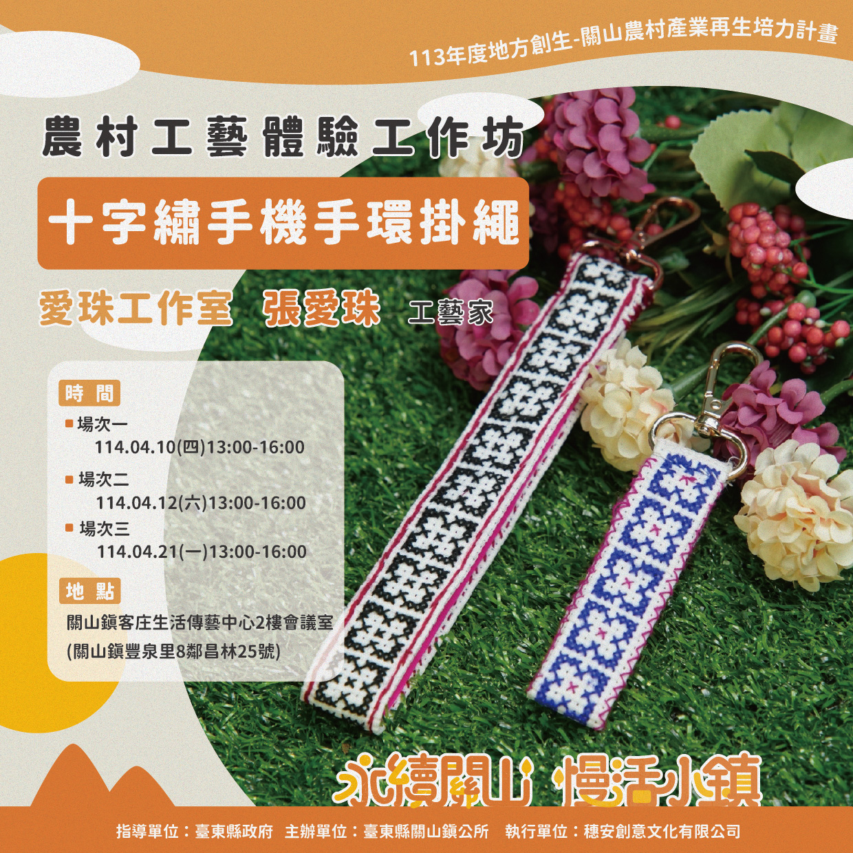 參加張愛珠老師帶領的「十字繡手機手環掛繩」體驗,真的讓人感受到手作的魅力與療癒。從配色到一針一線縫製,每個步驟都需要耐心與專注,也讓大家在繁忙的生活中找回內心的平靜。老師非常親切,也會細心指導每個人,就算是手作新手也能順利完成自己的作品。最後完成的手機掛繩不只是實用,更是獨一無二的溫暖紀念,帶著滿滿的成就感與幸福感!這是一場既放鬆又充實的手作小旅程~不需經驗,只要你願意拿起針線,就能在指尖感受手作的靜謐與溫度。