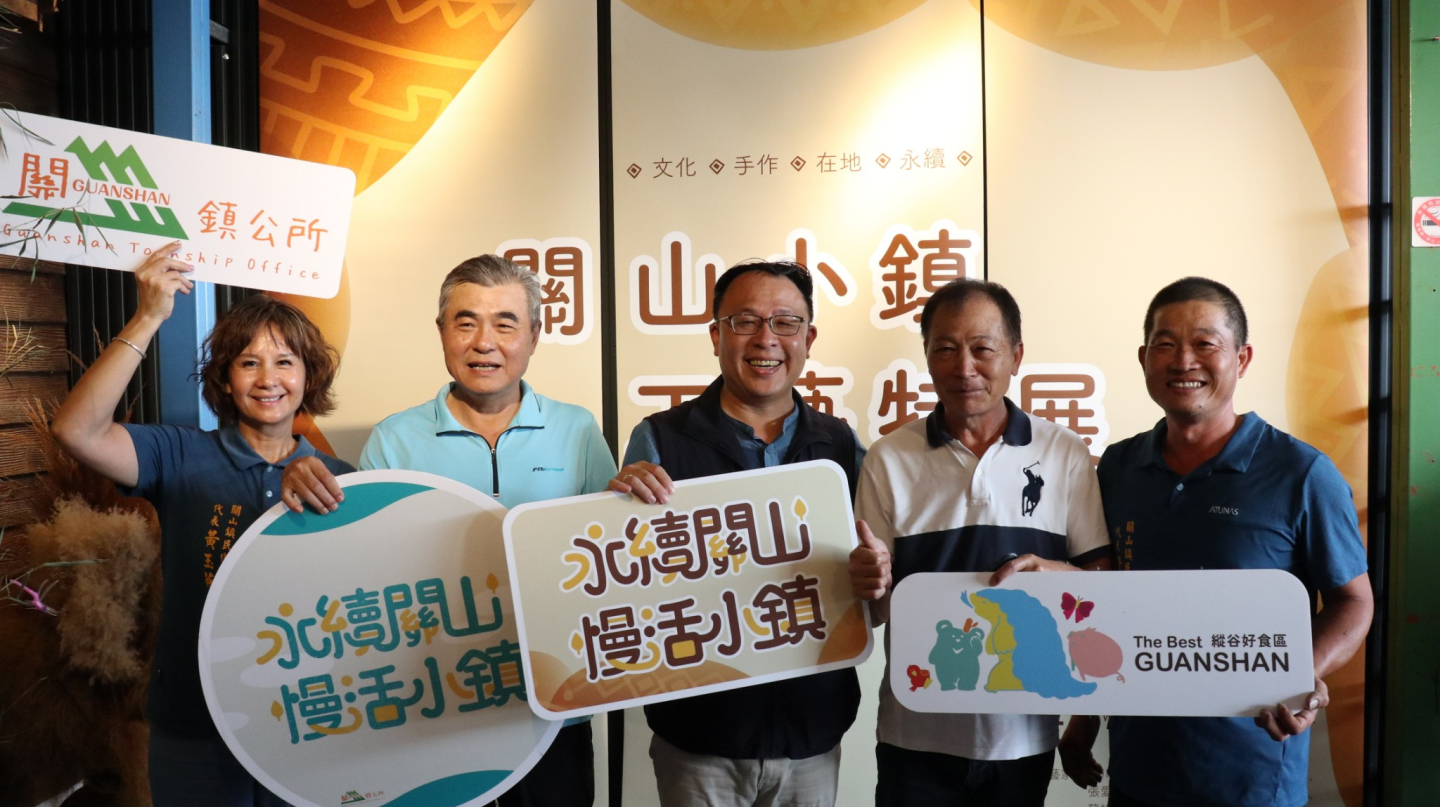 「關山小鎮工藝特展」匯集鎮內11位工藝家及2位駐村藝術家的作品,作品有廢紙、木雕、絲瓜、愛玉及竹子等多樣化材料製作而成,彭鎮長、代表會吳文忠主席、副主席李偉鈺、謝東原代表及黃玉英代表、縣議員楊清順夫人彭明玉及各社區代表參與開幕茶會,除品嘗在地知名的美食外,也逐一欣賞各類作品,對於各藝術家的作品讚不絕口,彭鎮長等人對於黃永寶藝術家的木雕作品非常有感覺,他解釋以高山香樟雕刻的「毅力」是取自著名三叉山事件的啟發,阿美族文化多以口述傳承,希望透過木雕呈現阿美族的歷史故事。
