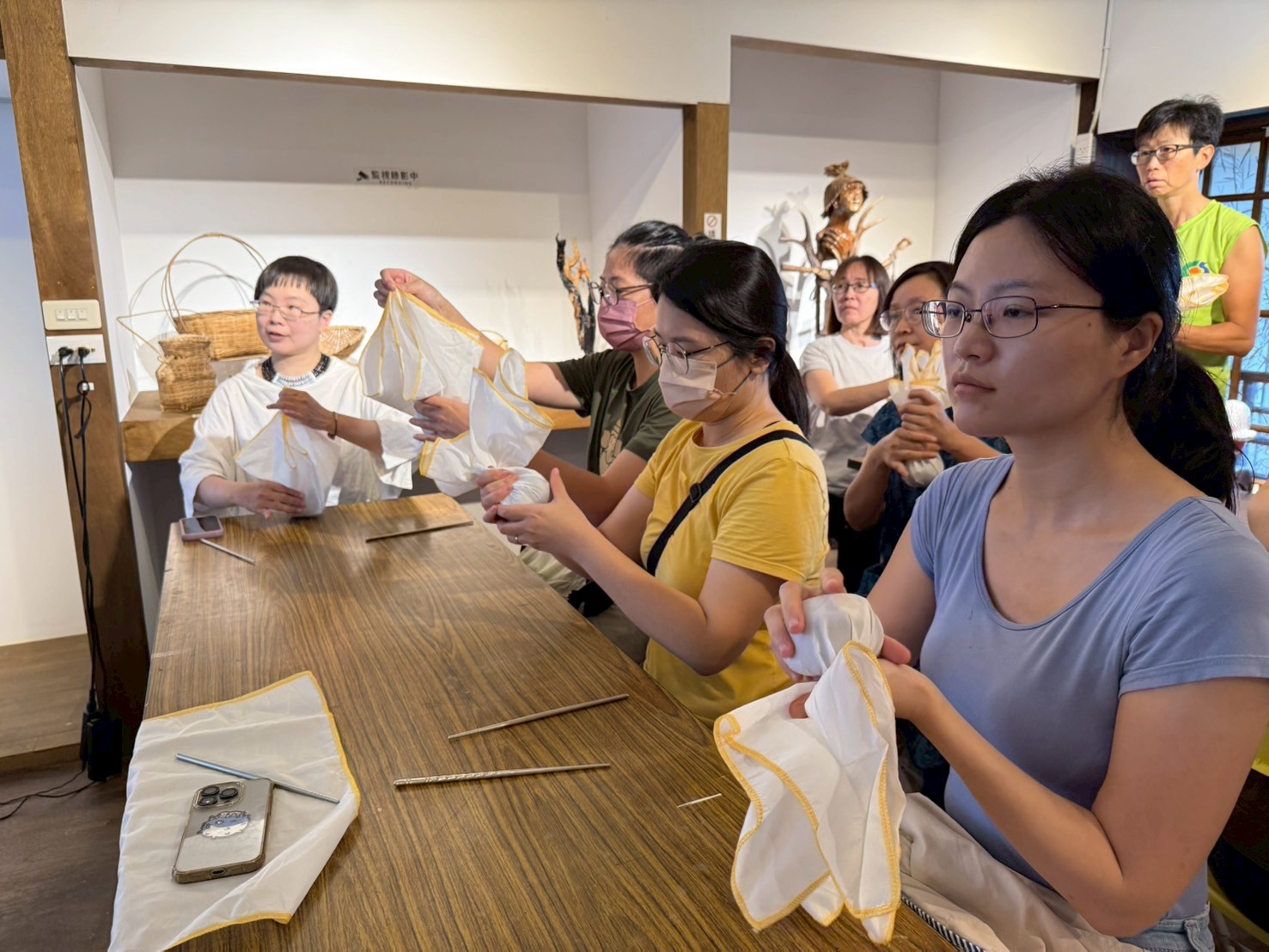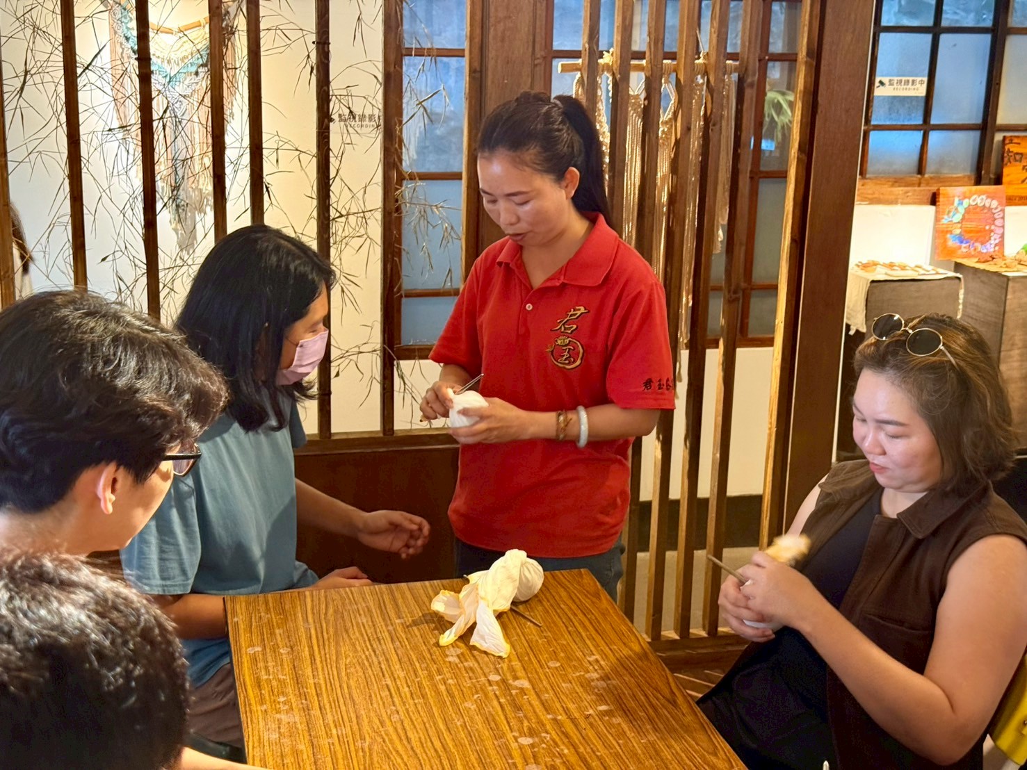 也讓大家體驗紅烏龍製茶的過程中「團揉」的技術與目的