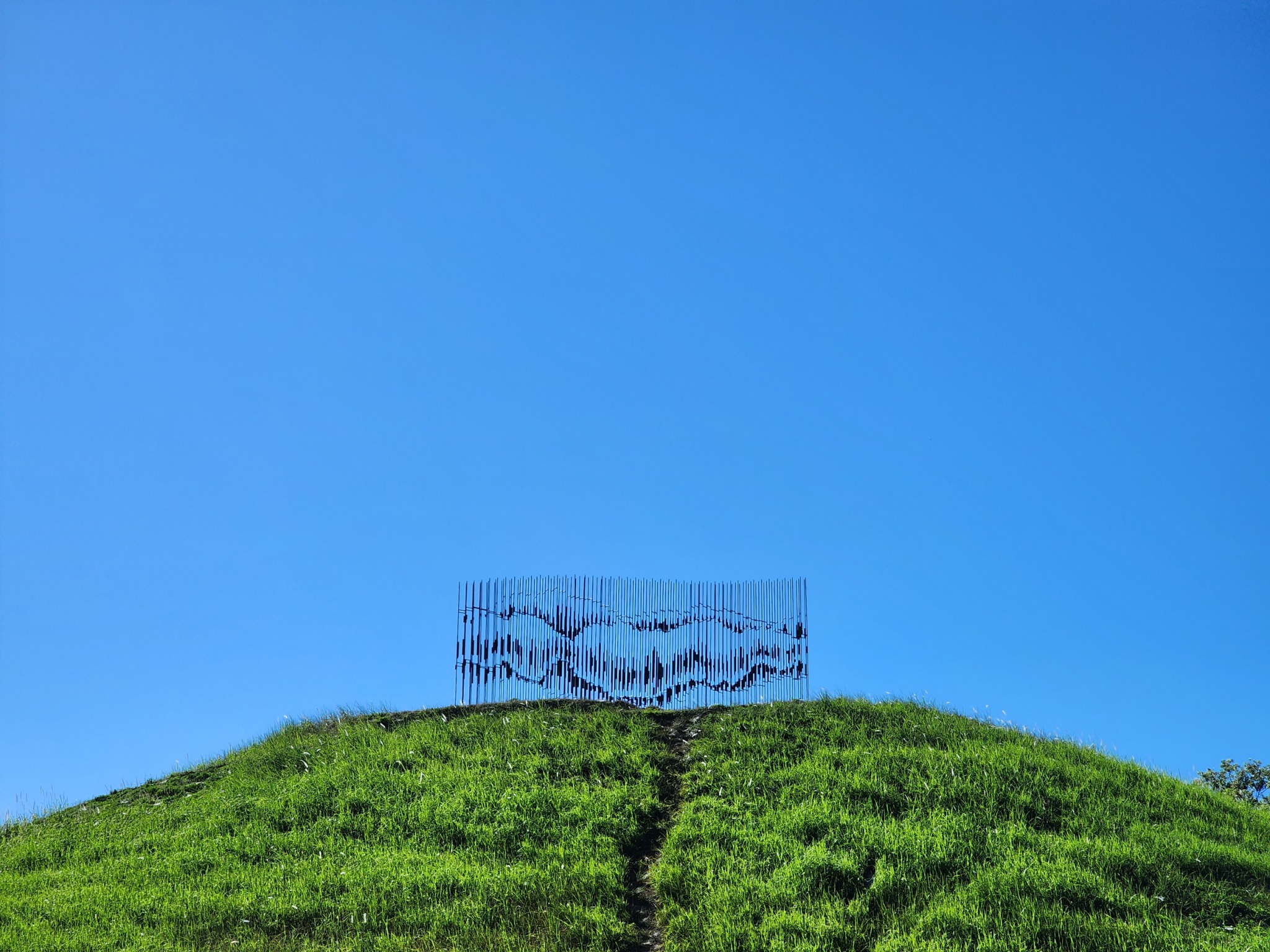 靈感來自雲中山景,作品以變動的視角呈現雲與山的互動。鋼筋籠的結構象徵臺灣堅實的工業力量,也因風而顫動,展現自然與人工之間的張力與共鳴。